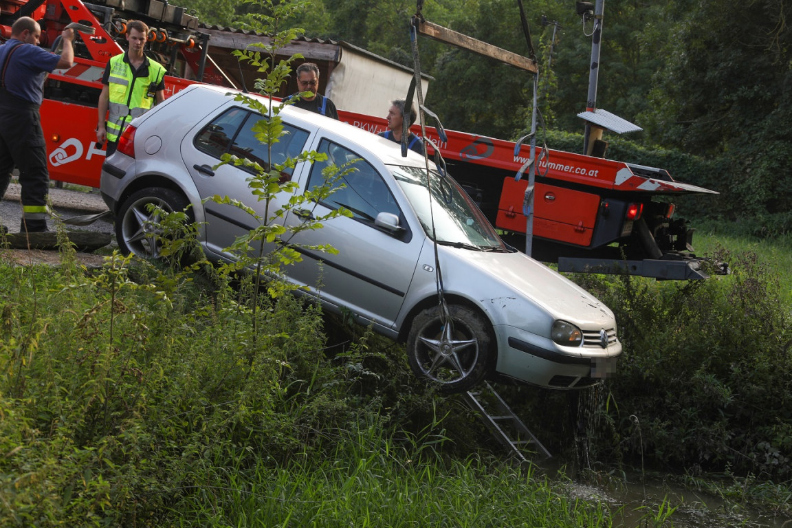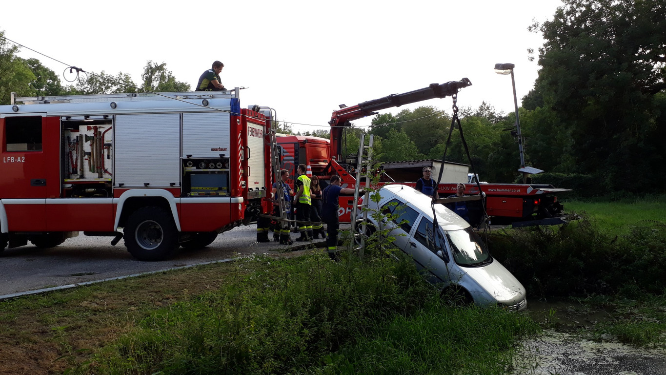 Ein PKW rollte während einem Fischeinkauf in einen angrenzenden Teich. Wir sicherten das Fahrzeug vor weiterem versinken im Teich ab und unterstützten das Abschleppunternehmen bei der Bergung des Fahrzeugs.