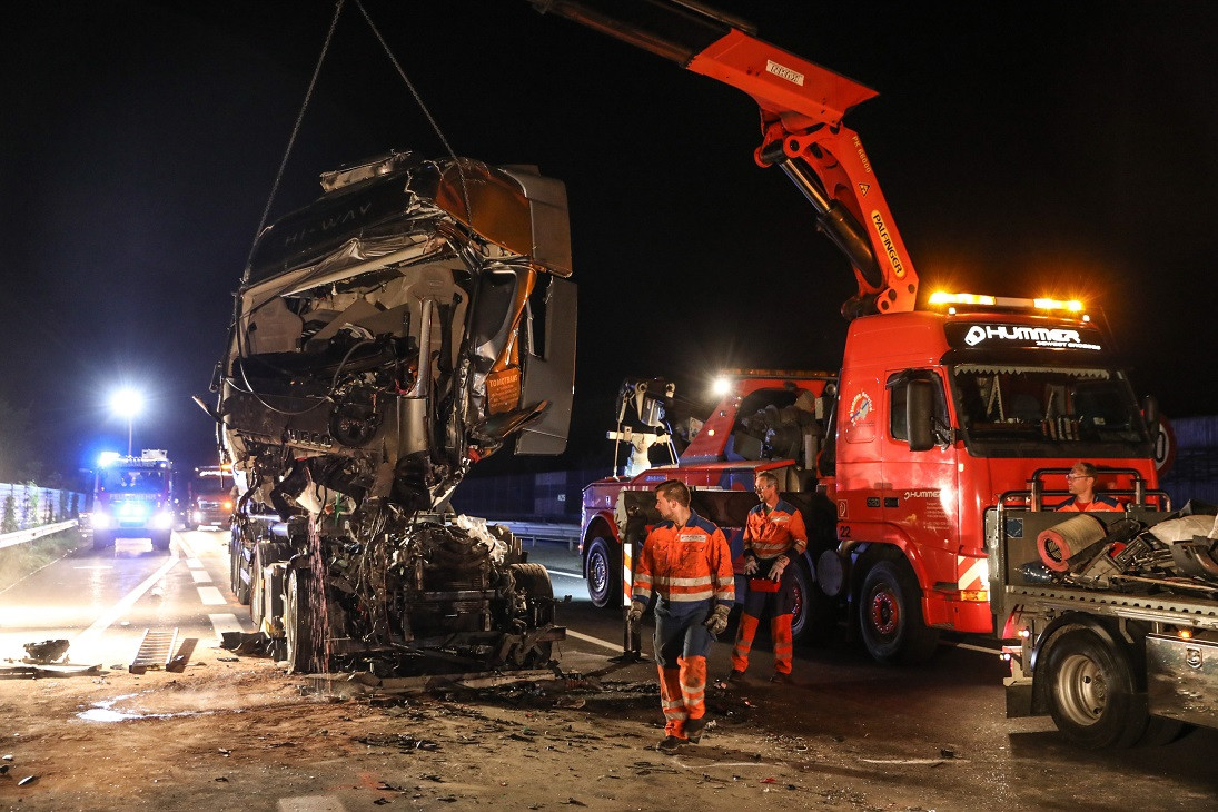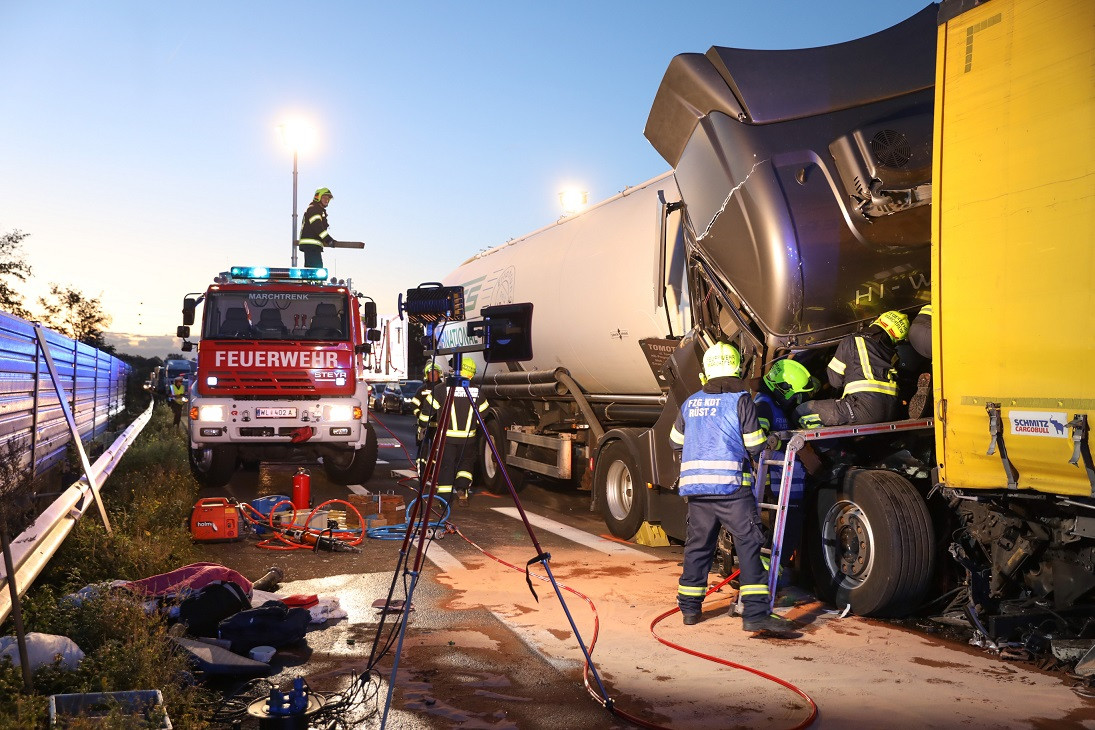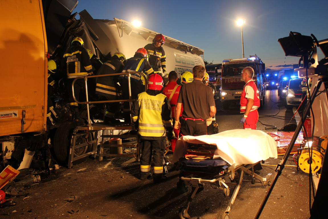 Der verletzte LKW Lenker wurde anschließend mit dem Rettungshubschrauber (Christophorus 10) ins Krankenhaus geflogen.Weiters wurden gemeinsam die auslaufenden Betriebsmittel gebunden und das örtliche Abschleppunternehmen bei der Bergung der Fahrzeuge unterstützt.