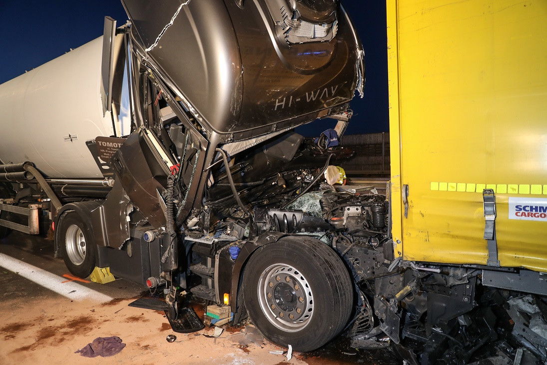 Im Abendverkehr auf der A25 krachte ein LKW mit voller Wucht auf den Auflieger eines vor ihm fahrenden Lastkraftwagens. Ein LKW Fahrer konnte durch Einsatz von schwerem Bergegerät aus dem stark beschädigten LKW gerettet werden.