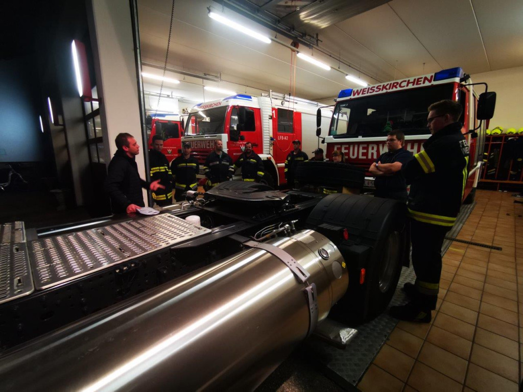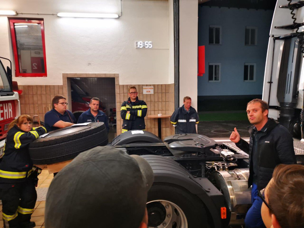 Am 23.10.2019 konnten wir einen Einblick in die Antriebstechnik von erdgasbetriebenen Nutzfahrzeuge erhalten. Im Besonderen ging es hierbei um flüssiges Erdgas (LNG). Wir bedanken uns sehr herzlich bei Iveco Hörsching für die zur Verfügung gestellte Zugmaschine sowie bei Herrn Gutenbrunner für die Durchführung. Wir konnten so wichtige Informationen sammeln, welche uns im Einsatzfall einen erheblichen Vorteil bieten.