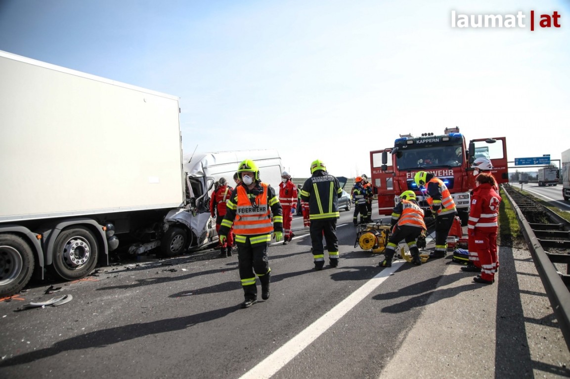 Die Feuerwehr Marchtrenk war bereits, aufgrund eines LKW Auffahrunfalles auf diesem Teilstück, im Einsatz.Im Rückstaubereich ereignete sich dann ein zweiter folgenschwerer Unfall. Ein Kastenwagen krachte in das Heck eines stehenden LKW's.