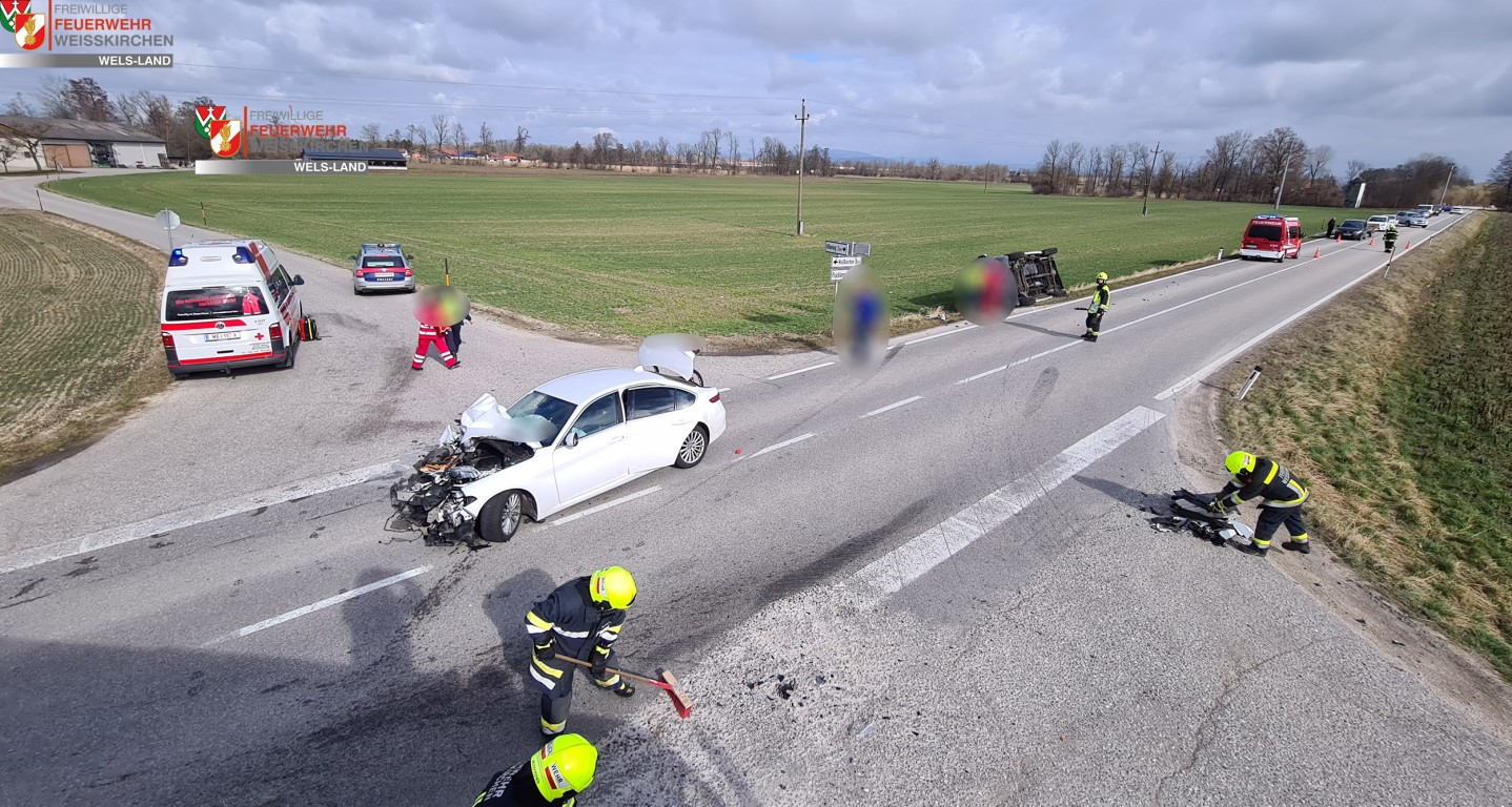 Heute Vormittag wurden wir zu einem Verkehrsunfall auf der Traununfer- bzw. Puckinger Straße alarmiert. Bei unserem Eintreffen am Einsatzort wurde festgestellt das 3 Personen verletzt wurden. Das rote Kreuz kümmerte sich um die Versorgung der Verletzten. Austretende Betriebsmittel wurden von uns gebunden und anschließend fachmännisch entsorgt. Während der Bergung der Fahrzeuge musste die Landesstraße kurzzeitig gesperrt werden.