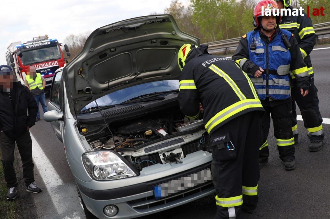 Bei unserem Eintreffen konnte festgestellt werden, dass es sich um keinen Brand bei dem Fahrzeug handelte sondern um einen technischen Defekt. Der PKW wurde auf den naheliegenden Autobahnparkplatz geschoben und ausgelaufene Betriebsmittel wurden gebunden. Nach kurzer Zeit konnten alle 3 Feuerwehren wieder einrücken. Zusätzlich war auch die Exekutive im Einsatz.