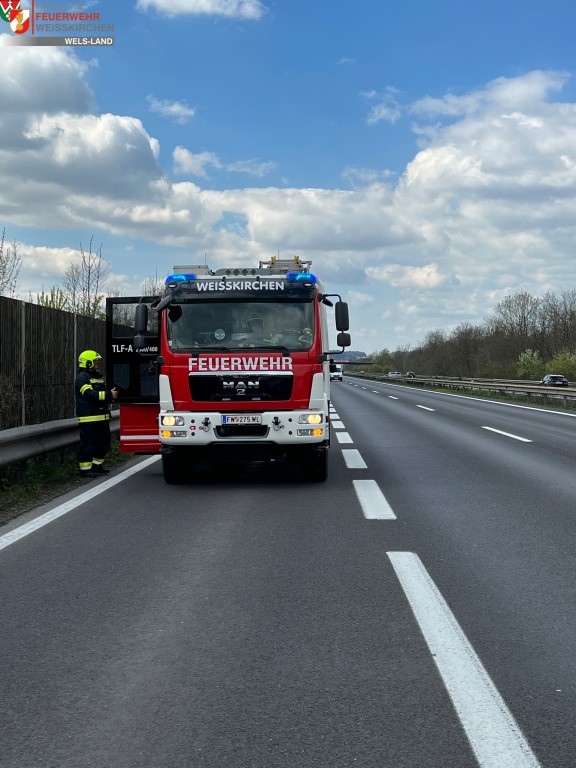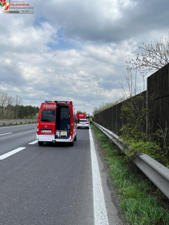 Am heutigen Ostersonntag wurden wir gemeinsam mit der FF Nettingsdorf und der FF Pucking-Hasenufer zu einem Brand KFZ auf der Autobahn A25 in Fahrtrichtung Linz alarmiert.