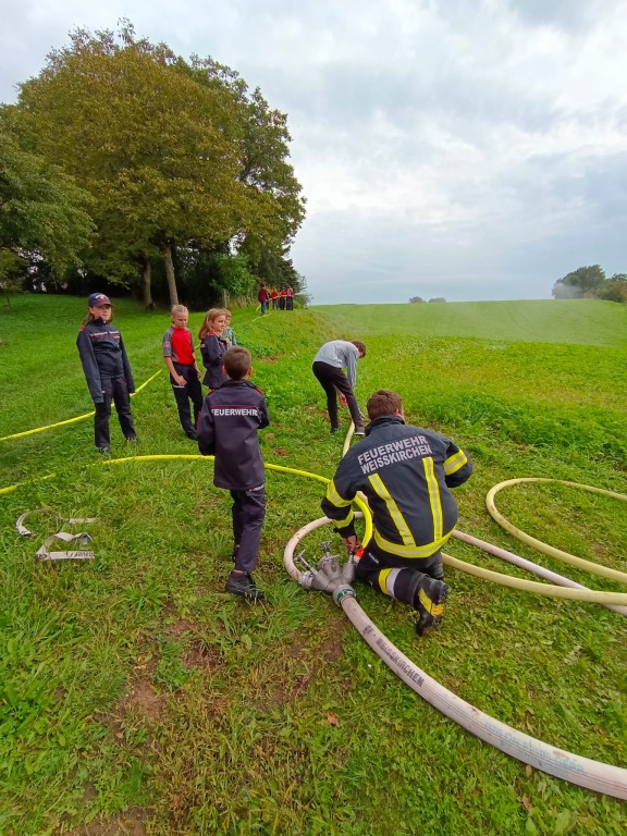 Bei dieser Übung wurde mit der Jugend die Löschwasserversorgung über längere Wegstrecken geübt. Diese wird benötigt, wenn das Hydrantennetz nicht flächendeckend ausgebaut und die nächste Wasserentnahmestelle weiter entfernt ist.
