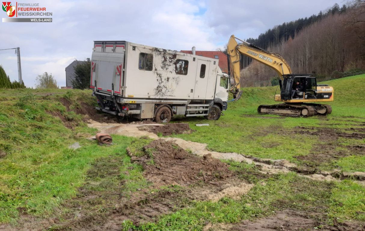 Am 07.Dezember um 07:44 wurden wir zu einer Fahrzeugbergung in die Untere Dorfstraße Richtung Hetzendorf alarmiert. Ein LKW war auf einem unbefestigten Weg unterwegs, ist in einer Kurve zu weit nach rechts geraten und dann über eine kleine Böschung abgerutscht.