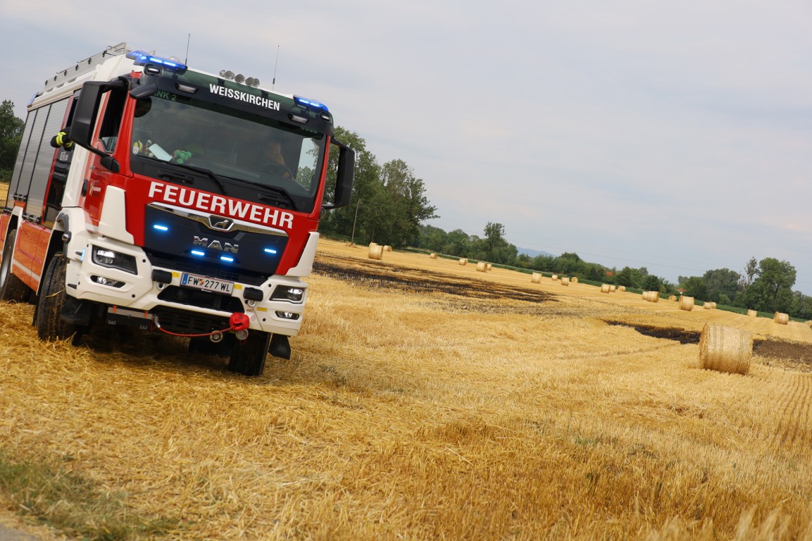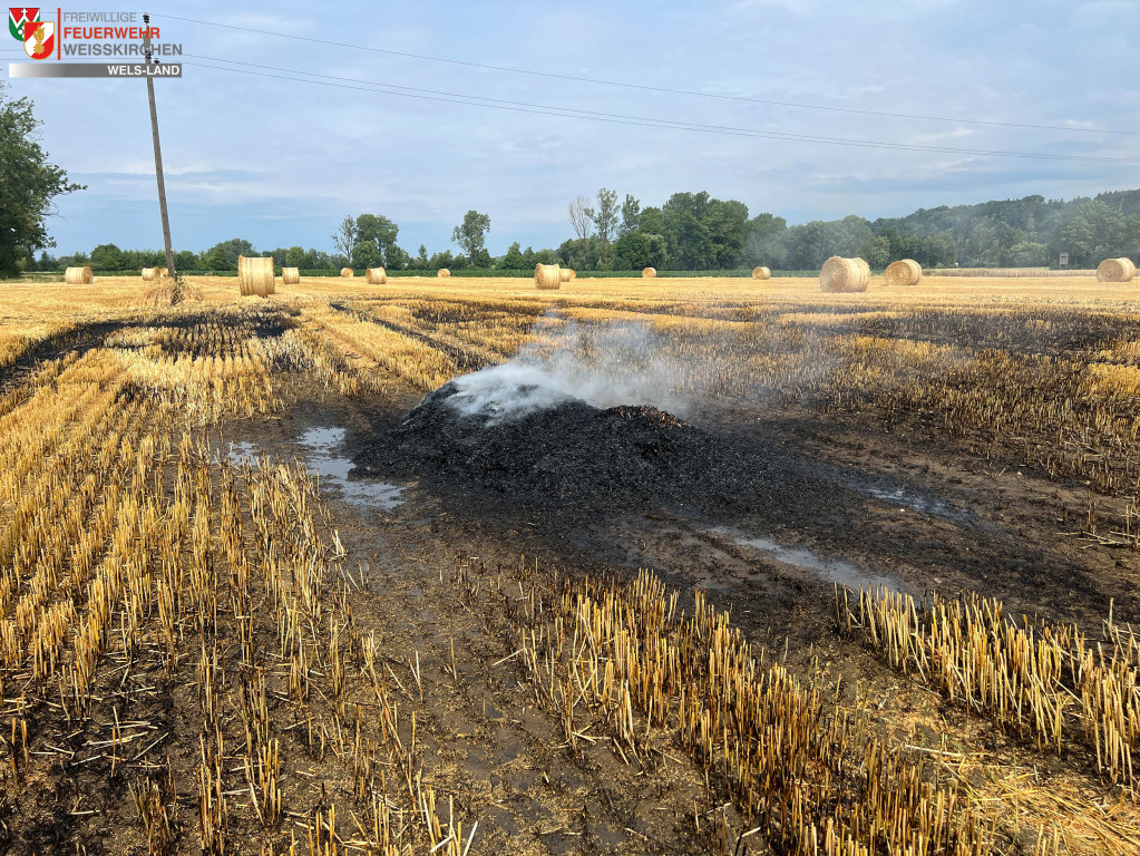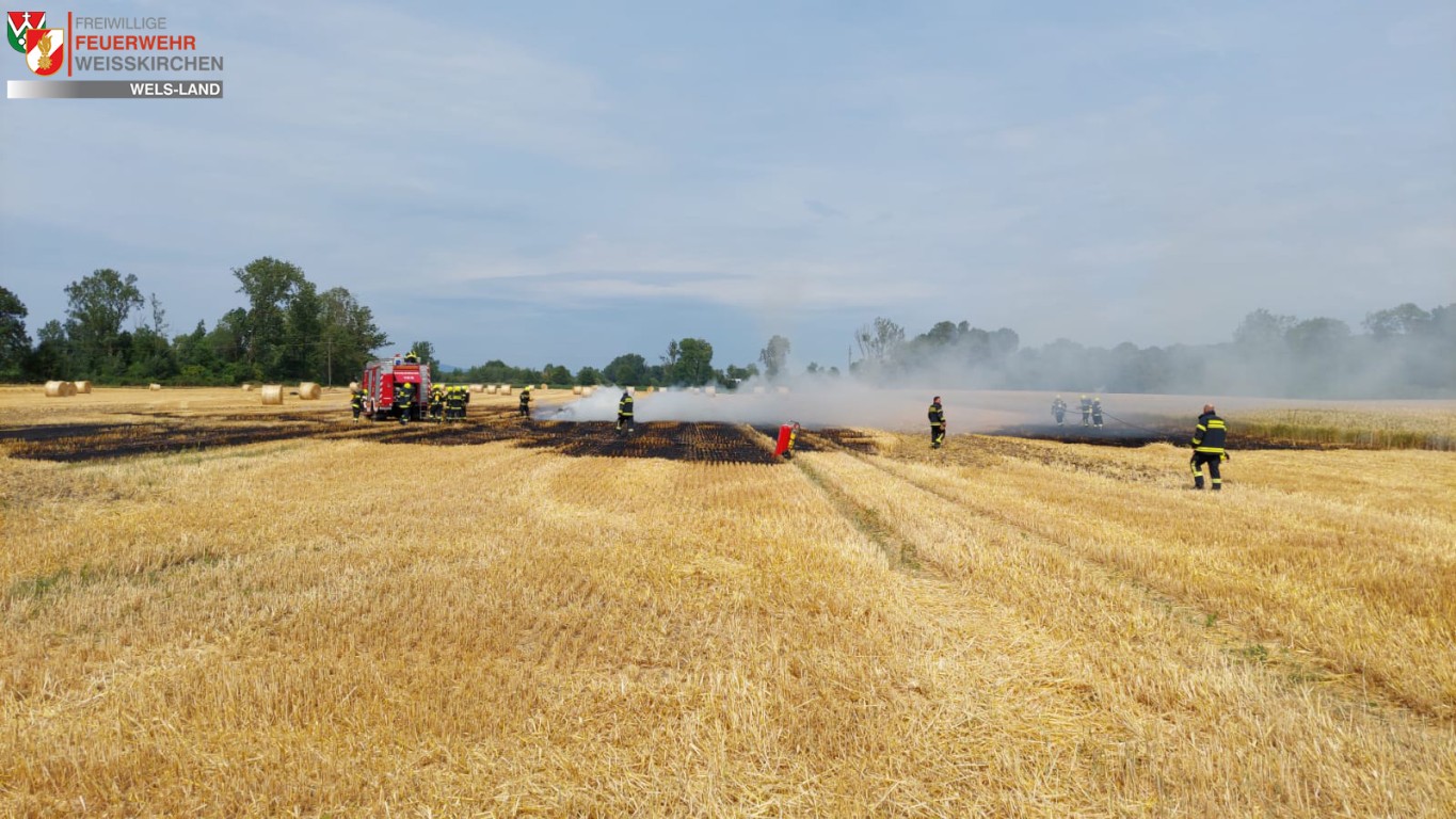 Beim Eintreffen an der Einsatzstelle war bereits die Feuerwehr Pucking-Hasenufer vor Ort und war mit Löscharbeiten beschäftigt. Die umliegenden Landwirte haben schon geistesgegenwärtig Wasser mit einem Güllefass zur Einsatzstelle transportiert und zogen mit dem Grubber einen Furcht damit sich der Brand nicht ausbreiten konnte. Es wurden noch 2-3 Strohballen die in Brand geraten sind abgelöscht. Nach kurzer Zeit konnten wir dann wieder einrücken.