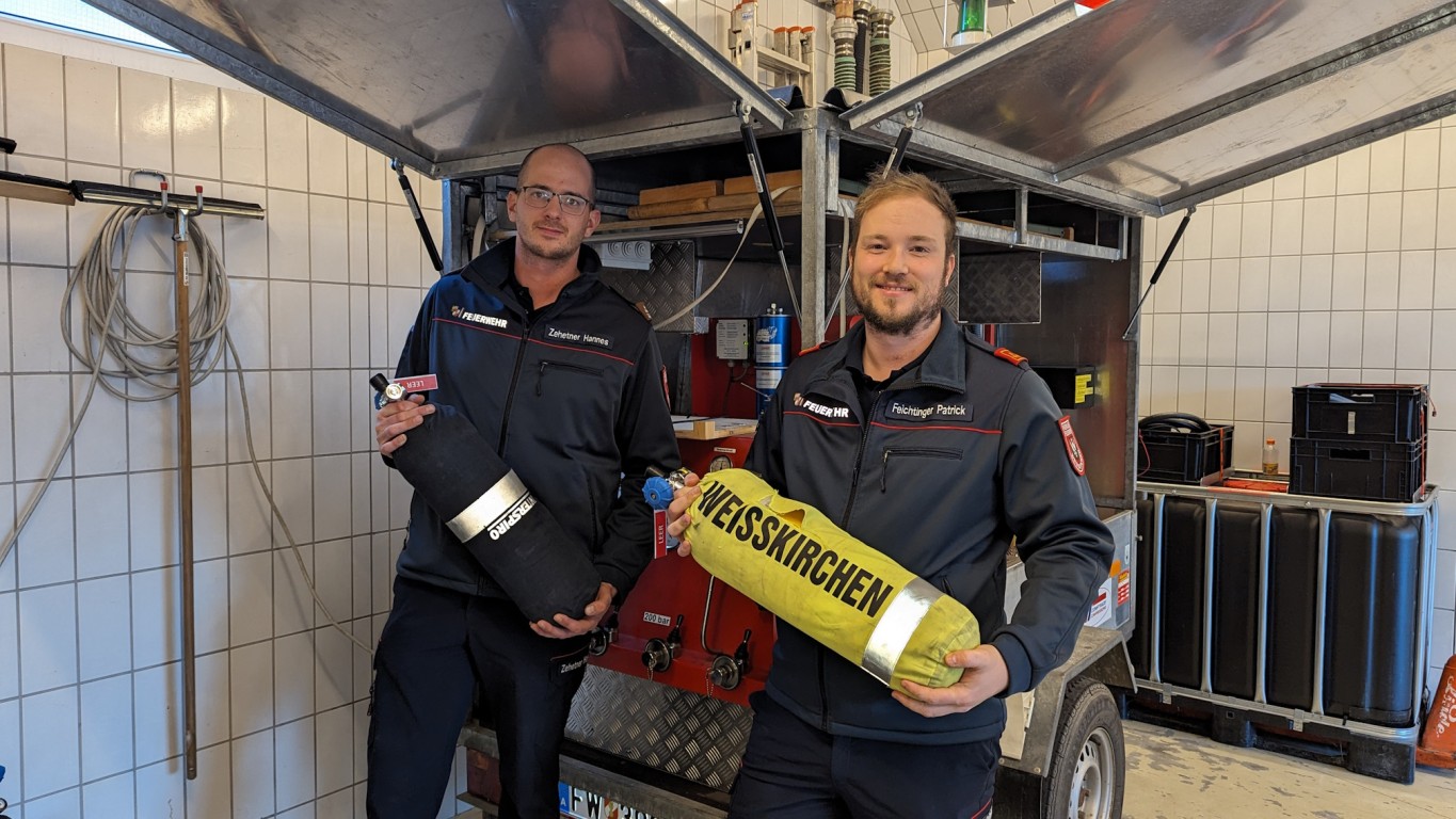 Mit der erfolgreichen Teilnahme am Lehrgang für Betreiber von Atemluftfüllstationen und der Einschulung des Herstellers auf unseren mobilen Atemluftkompressor, können wir nun die ersten beiden füllberechtigten Kameraden der FF Weißkirchen vorstellen. Unser Atemschutzwart HBM d.F. Zehetner Hannes wird nun gemeinsam mit HBI Feichtinger Patrick die interne Ausbildung weiterer Kameraden beginnen um das Aufgabengebiet auf breitere Beine zu stellen.