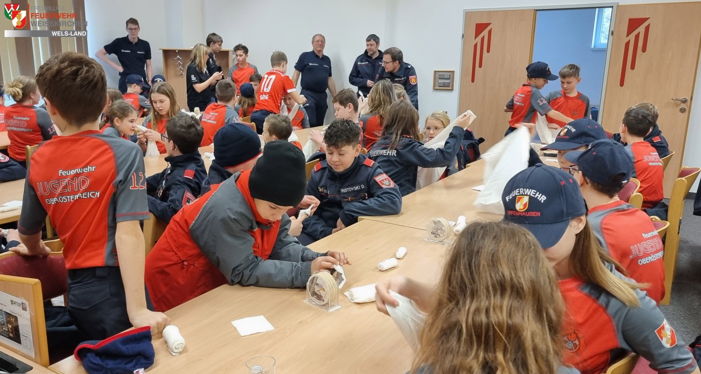 Als Vorbereitung für den bald anstehenden Wissenstest, konnte die Feuerwehrjugend gestern unter Anleitung und Anwesenheit des Roten Kreuzes und der FMD- Ausbildner des Bezirks Wels-Land, ihr Wissen wieder auffrischen.