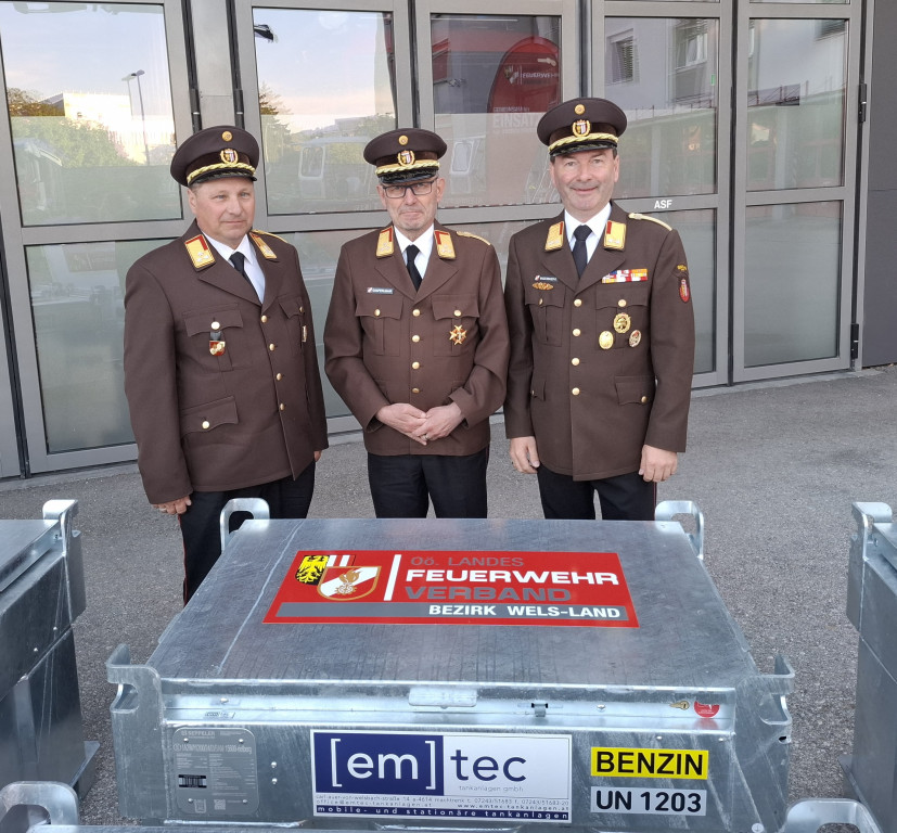 An das BFKDO Wels-Land wurde unter anderem eine mobile Tankstelle (Benzin) übergeben, welche bei der FF Weißkirchen an der Traun stationiert ist.