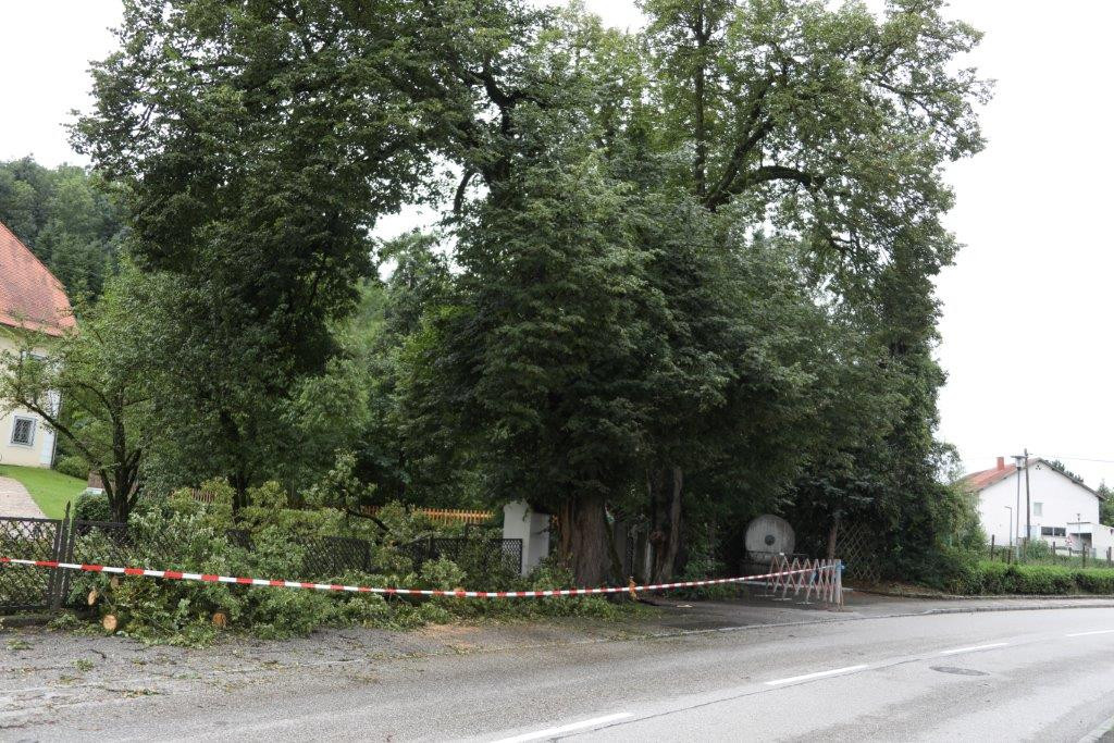 Die Feuerwehr Weißkirchen an der Traun wurde am 06.08.2017 um 02:16 Uhr zu einem Sturmschaden alarmiert. Ein Teil eines uralten Baumes stürzte auf die Fahrbahn und musste entfernt werden.
