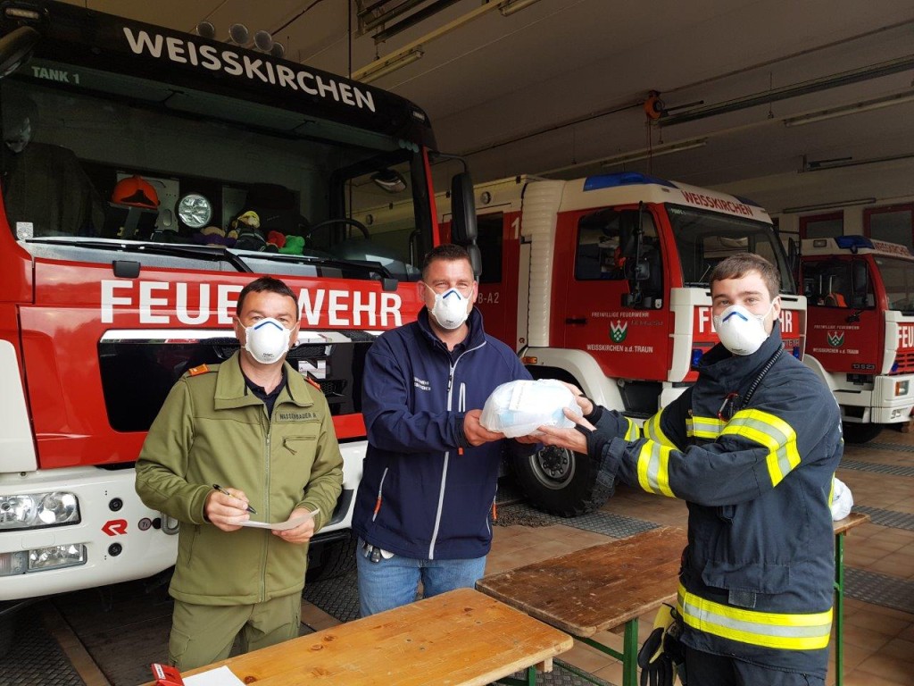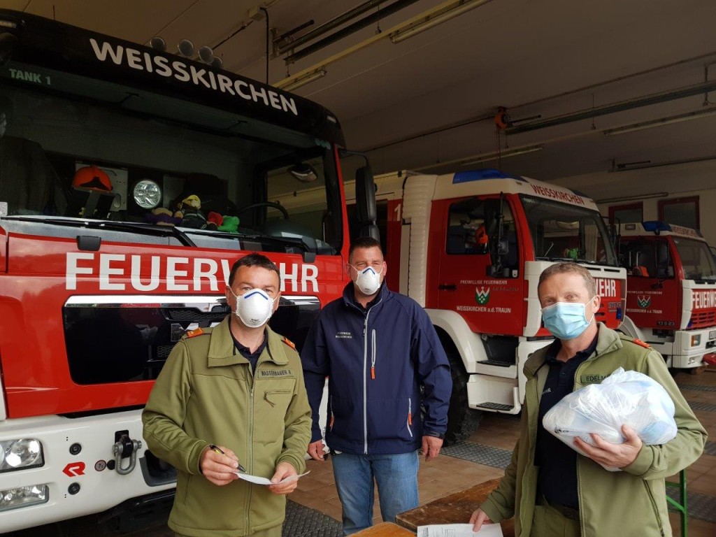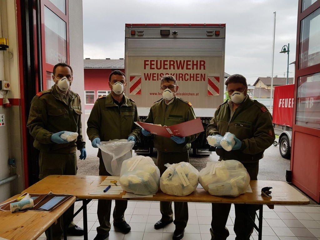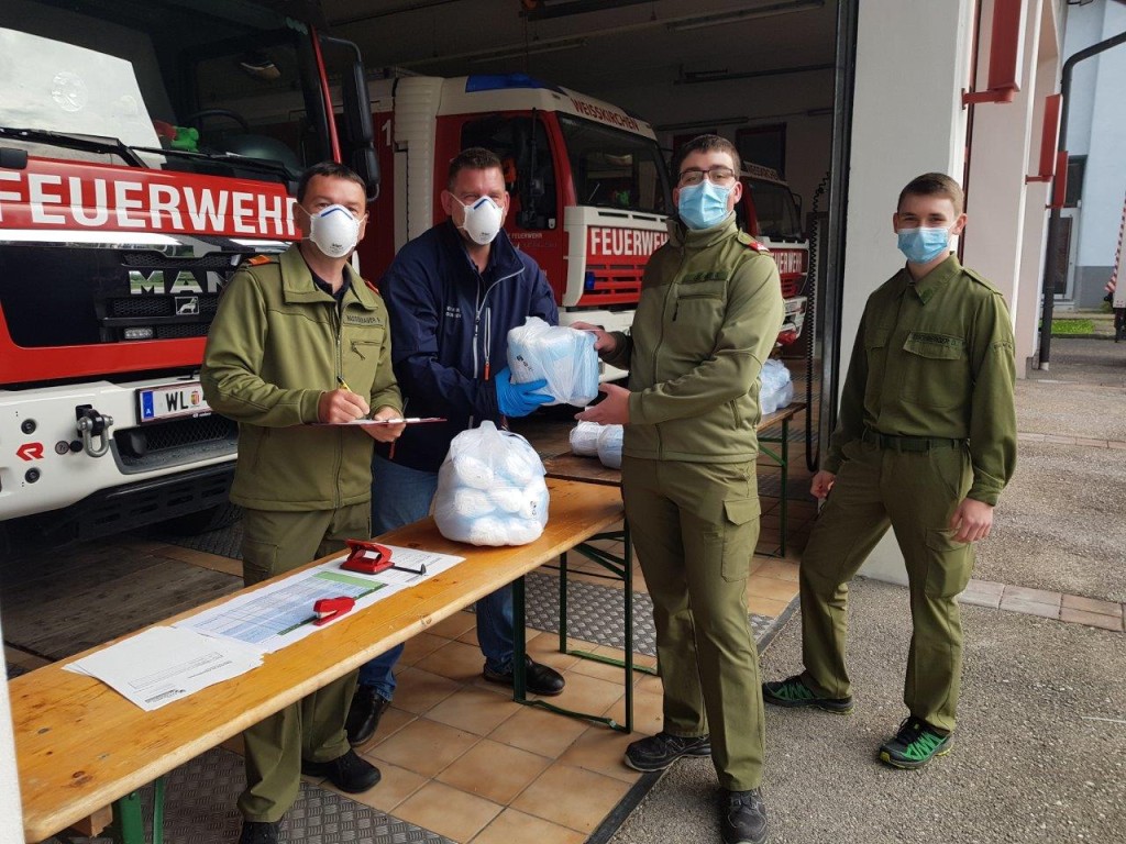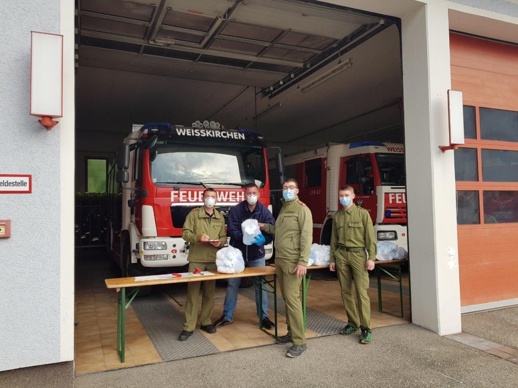Die Ausgabestelle des Abschnittes Wels Land fand bei uns in der Feuerwehr Weißkirchen statt, wo sich die Pflichtbereichskommandanten die Masken für ihre Schulen abholen konnten.