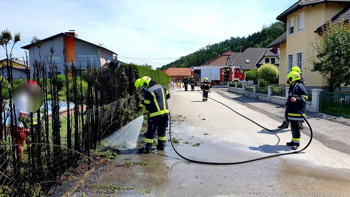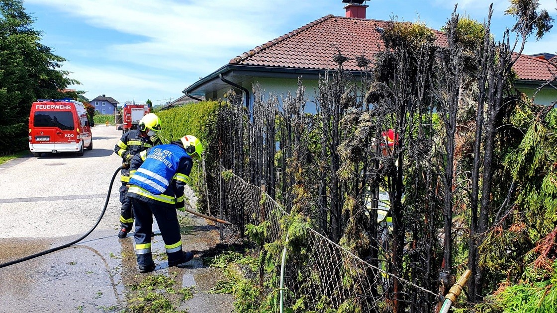 Der Brand konnte von den Anrainern mittels Gartenschlauch und Feuerlöscher in Schach gehalten werden. Die Feuerwehr führte noch Nachlöscharbeiten durch.