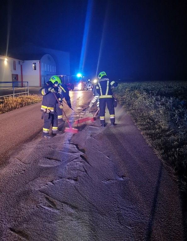 Gestern Abend um 22:27 Uhr wurden wir von der Bezirkswarnstelle Wels zu einer Ölspur in unserem Gemeindegebiet alarmiert. Beim Eintreffen am Einsatzort stellte sich heraus, dass es sich um eine Hydrauliköl-Spur handelt.