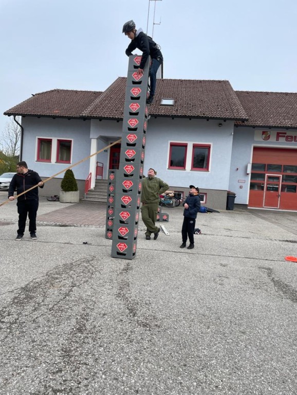 Am Sa, 09.04.2022, hat unsere Feuerwehrjugend ein Kistenklettern veranstaltet. Der Rekord lag bei 23 aufeinander gestapelte Kisten.