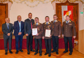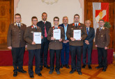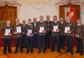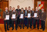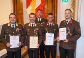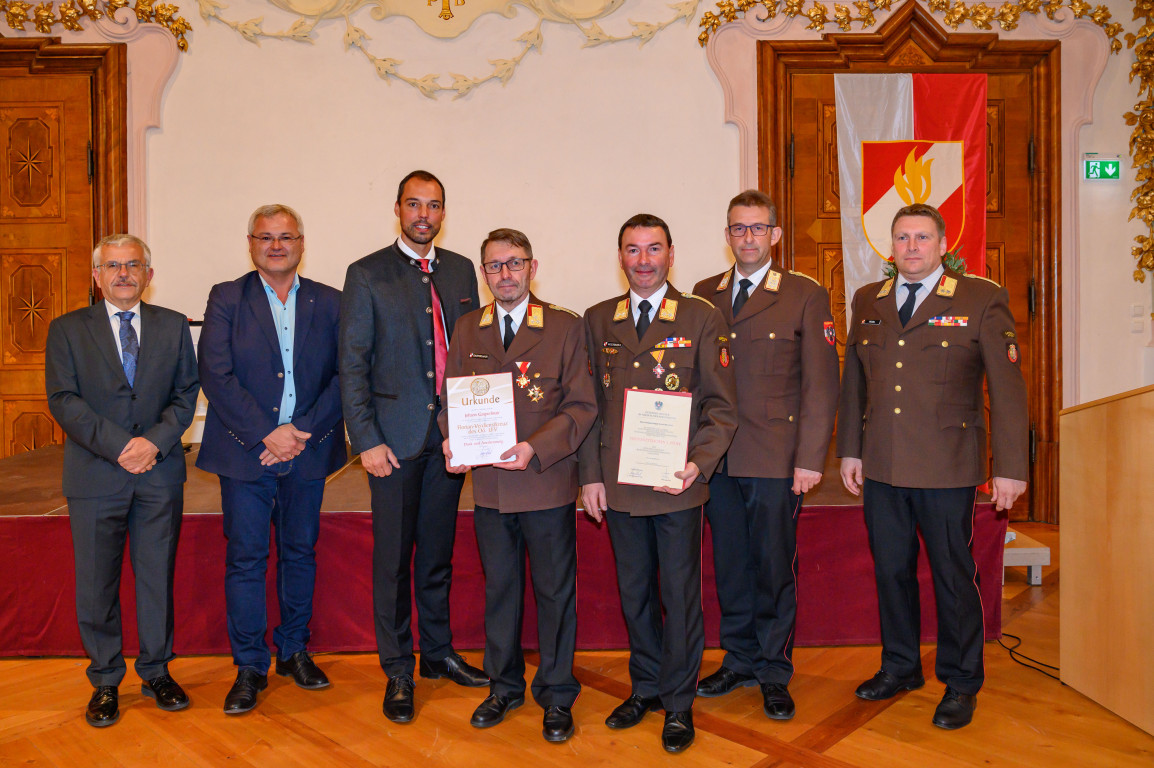 Die Florianmedaille in Anerkennung der besonderen Verdienste um das oberösterreichische Feuerwehrwesen erhielten ABI Thomas Stadlbauer und OBI Martin Schneider in Stufe 3.