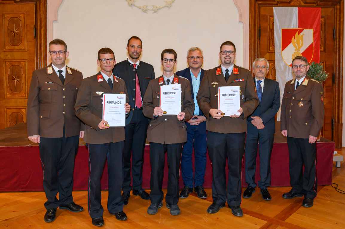 Das Verdienstabzeichen des Bezirksnachrichtenzuges erhielt HBI Patrick Feichtinger in Bronze und BM Wolfgang Santer in Gold.